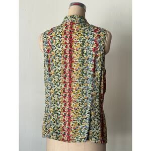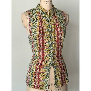 Features brass buttons, collar and a wonderful bright floral print. Minor wear to one shoulder.