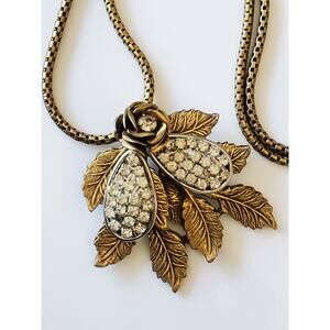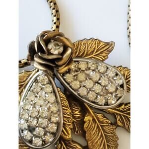 Vintage Floral Rhinestone Gold Tone Necklace