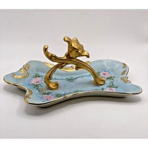 Used item. The gold is not perfect there is discoloration. There is also discoloration on the dish.