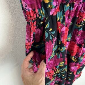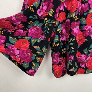 Vintage Floral Romper 80s Black V-Neck Short Sleeve Boho Festival Garden Party M