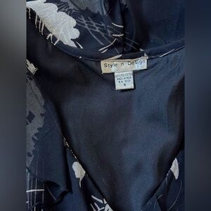 Vintage Floral Ruffle Black Dress