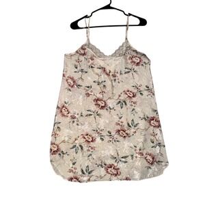 Vintage Floral Satin Lace Trim Chemise Nightgown Cream Pink Jacquard Sleeveless