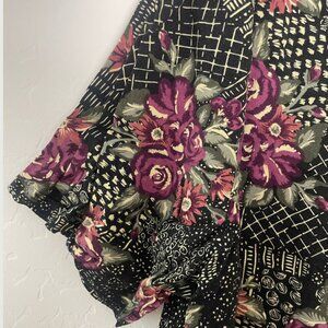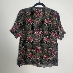 Vintage Floral Scallop Lace Embroidered Hipster Hippie Art Button Hip Blouse Top
