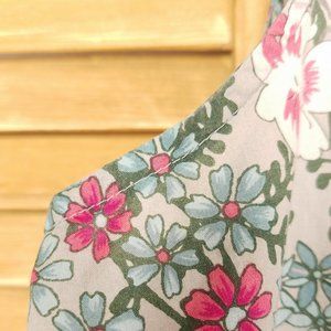 Women's, floral, bohemian style, no sleeve, 100% cotton, v-neck, button down, collar shirt, with two long fabric tie, vintage floral, 70's vibe, mnt.boho loved.