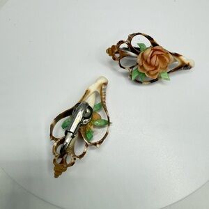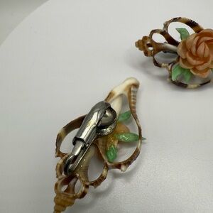 Elegant floral shell earrings featuring a blend of brown and green hues. Perfect for adding a touch of nature-inspired beauty to any outfit.