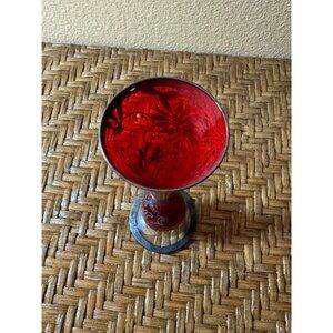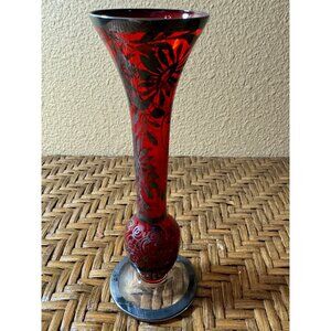 Vintage Floral Silver Over Lay Glass Bud Vase Red & Black