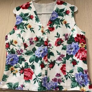 In good condition Vintage Floral Size L Women’s Vest .It has signs of usage,. NO BRAND & SIZE tag. Please see photos for details and condition of the item before purchase . Message for questions or offers, all sales are final.Thank you!