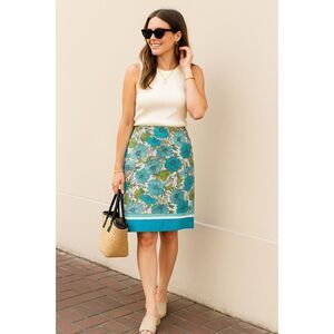 Vintage Floral Skirt size 4 Talbots Blue Green