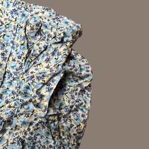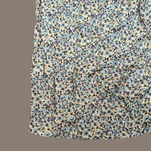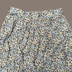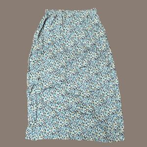 Vintage floral skirt. Dreamy blue and cream with petite florals. Waistband has a flat front and an elastic back. Has pockets for all your trinkets! Perfect for summer, lightweight and in good condition.