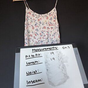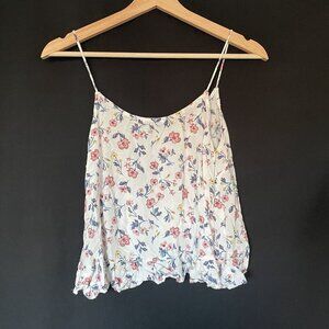This sleeveless top features a delightful floral pattern on a light background, offering an airy and feminine touch. Ideal for warm days, its relaxed fit and ruffled hem create a playful silhouette.