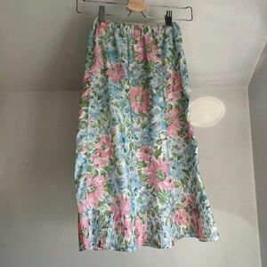 Vintage floral slip skirt with pleated hem. V beautiful retro print, pastels and green. So pretty styled with fuzzy winter sweaters. Special piece.