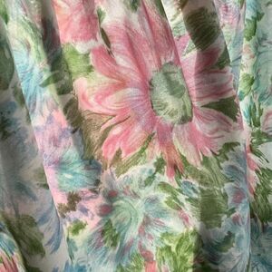 Vintage Floral Slip Skirt Groovy MCM Midi Pleated Retro Print Pastel Small