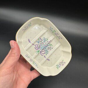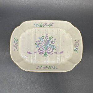 Vintage Floral Soap Dish Cottagecore 1980s Purple Blue Flowers Ceramic Romantic