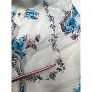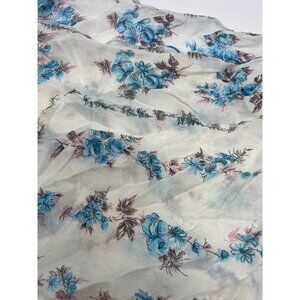 Vintage Floral Square Scarf Boho Lightweight Rolled Edge White Blue Pink Accents