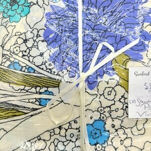 Pretty white, blue, and green pillowcase set. Most vintage sets are 50/50 cotton and polyester. No tags are present.