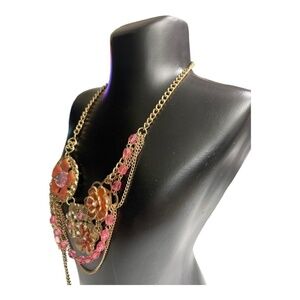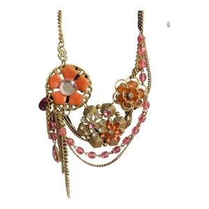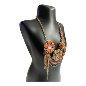 Vintage Floral Statement Bib Waterfall Flower Metal Necklace Gold Tone Chain