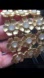 Elegant gold bracelet with floral design. Features white rhinestone accents. Vintage and beautiful.