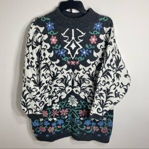 Vintage Floral Sweater 18W Made in USA Kate Collins Pink Blue Black White