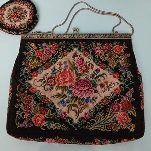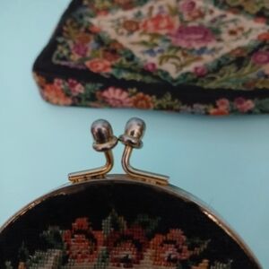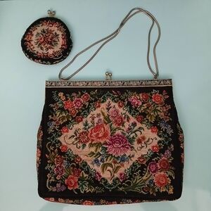 Vintage Floral Tapestry Handbag with Matching Coin Pouch