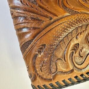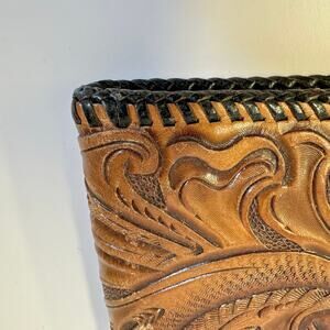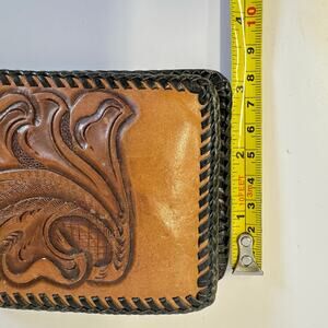 Vintage Floral Tooled Leather Wallet Western Design Bifold with Coin Pocket