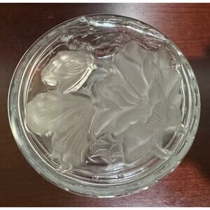 Vintage Floral Tulip Lidded Bowl Pressed Glass Trinket Bowl Candy Dish
