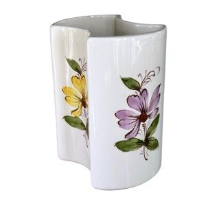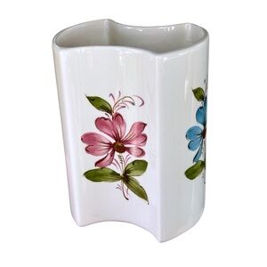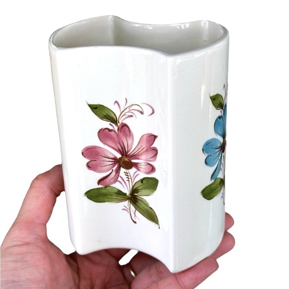Vintage Hand Painted Floral Vase FTD Secla Portugal 4 Sided Concave Shape 1981