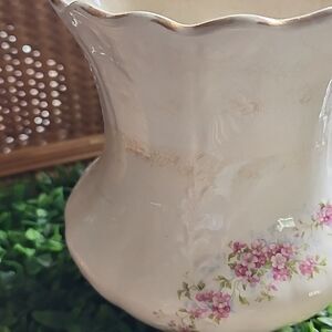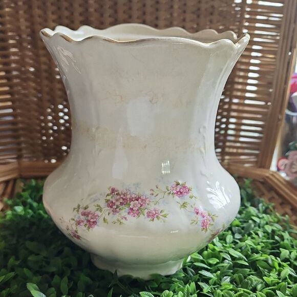 Vintage Floral Vase With Scalloped Gold Tone Rim Coquette