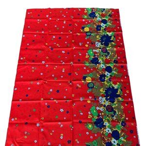 VTG Rare Schwartz Liebman Floral Flower Power Single Border Red, Yellow, Cobalt blue, vibrant red bright material.