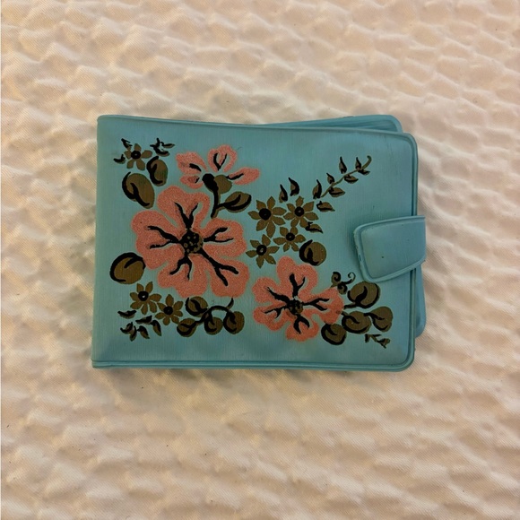 Charming wallet with floral design. Features a snap closure. Perfect for adding a touch of elegance.