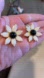 Vintage Floral White Navettes, Gold Setting and Blue enamel center clip Earrings