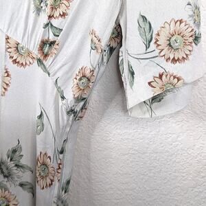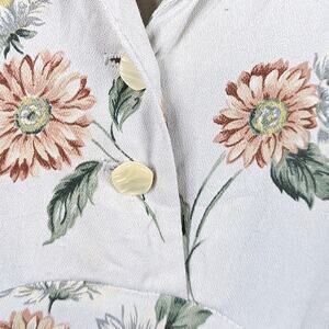 Vintage Floral White Sundress Midi Fit n Flare Collar Button Front Cottagecore S