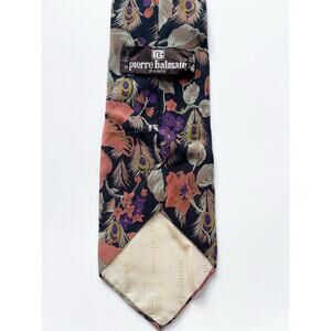 Vintage Floral and Peacock Feather Pierre Balmain Paris Silk Neck Tie