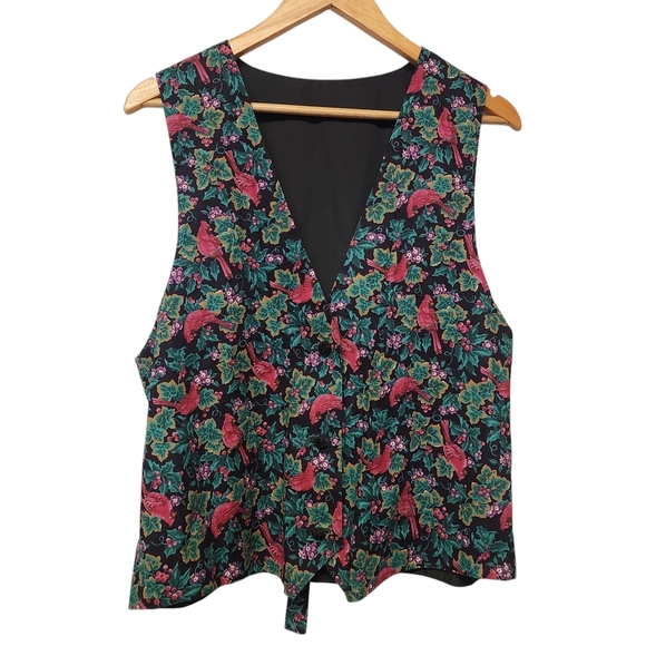 Vintage Floral holiday Red cardinal Bird Sleeveless Vest Top