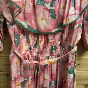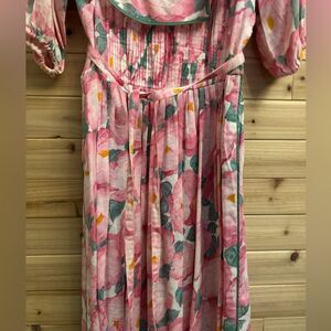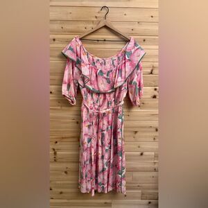 Vintage Floral Pleated Off The Shoulder Size Medium Cotton Midi Dress
