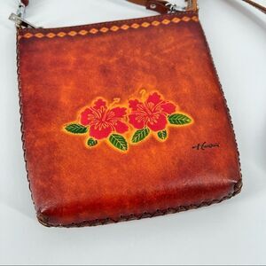 Vintage Floral Tooled Leather Crossbody Bag Hawaii woven Vintage purse