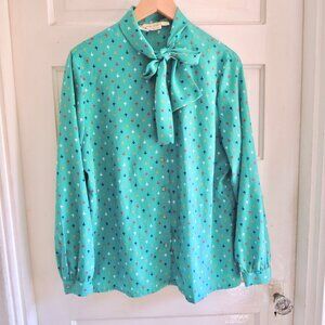 Vintage Florence Alper Neiman Marcus Teal Print Bow Blouse 18 (L/XL)