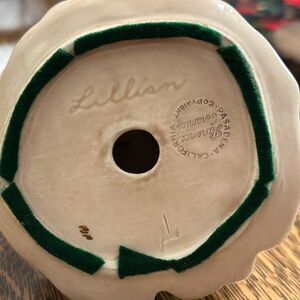Lillian is 7 3/4” tall and has NO chips or scratches.