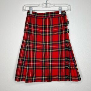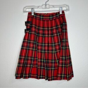 Vintage Florence Walsh Classic Red Scottish Tartan Plaid Wool Pleated Kilt Skirt