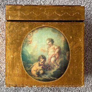 Vintage Florentine Tissue Box Gold with Cherubs Made in Italy