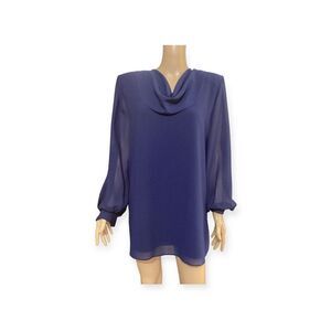 Excellent Vintage Condition, drape neck, sheer overlay, rhinestone cuff buttons, shoulder pads, organza sleeves, zip back, beautiful top, tagged size 14, see measurements for custom fit.