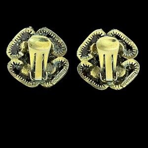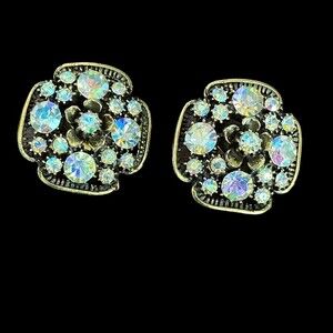 Vintage Florenza Aurora Borealis Rhinestone Gold Tone Clip Earrings