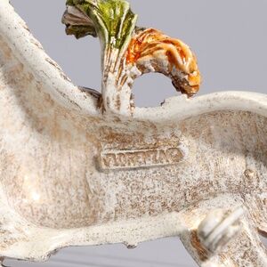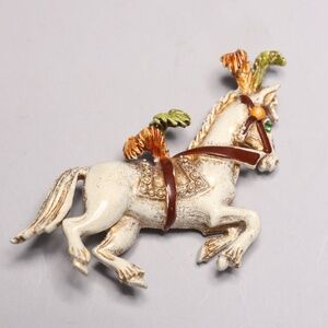 Vintage Florenza White Enamel Horse Signed With Green Rhinestone Eye Brooch