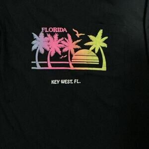 Tags: vintage tee, Florida shirt, Key West T-shirt, single stitch, 90s vintage, retro graphic tee, souvenir shirt, palm tree shirt, tourist T-shirt, unbranded vintage, 80s tee, black graphic T-shirt, rainbow sunset shirt, coastal vibes, streetwear, Y2K style, vacation shirt, oversized tee, beachwear, classic fit T-shirt