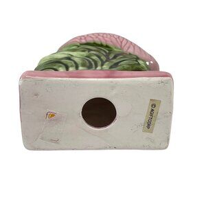 This vintage, decorative Florida flamingo souvenir figurine features a built-in thermometer, making it a functional and stylish piece for home or office. Crafted with attention to detail, it showcases a vibrant pink and green color palette. The vintage appeal and unique design add character to any space.