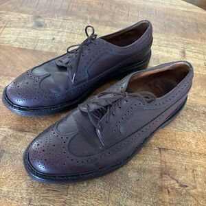 Vintage Florsheim Imperial Burgundy V Cleat heavy punched wing tip oxfords 8.5 C