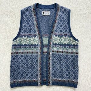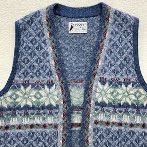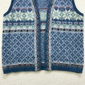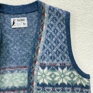 Vintage Floss Icelandic Wool Norwegian Style Open Front Long Line Sweater Vest