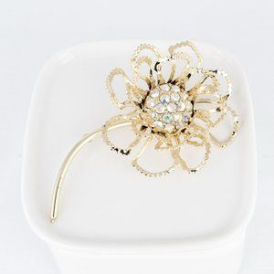 Vintage Flower Brooch AB Stone Gold Tone Signed Sarah Coventry Large Dimensional