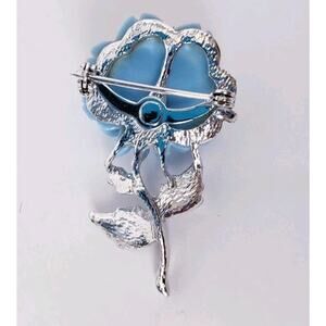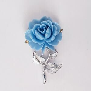 Vintage Flower Brooch Blue Molded Acrylic w/ Silver Tone Stem 1.75"