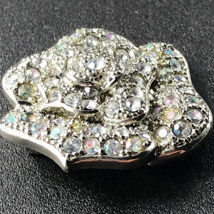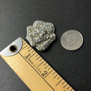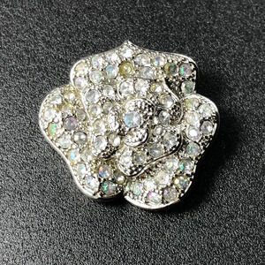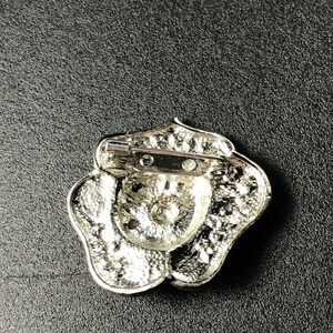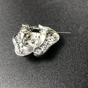 Vintage Flower Brooch Romantic Floral Rhinestone Cluster Silver Tone Pin