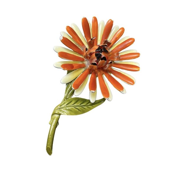 Vintage Flower Enamel Calendula Oversized Brooch Pin Bouquet Orange Figural